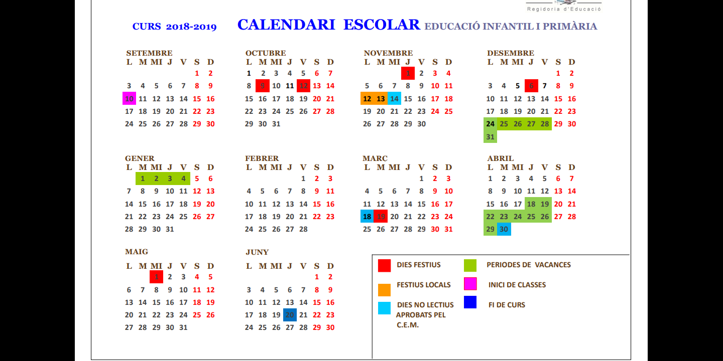 El calendario de la escuela deportiva corresponderá al calendario escolar 2018-2019 desde el lunes 1 de Octubre hasta el 30 de Junio y el del equipo de competición hasta el 31 de Agosto. Los días no lectivos serán los mismos. Los días no lectivos no se recuperan, para recuperar una clase perdida será necesario aportar un justificante y acordar un día con el profesor.